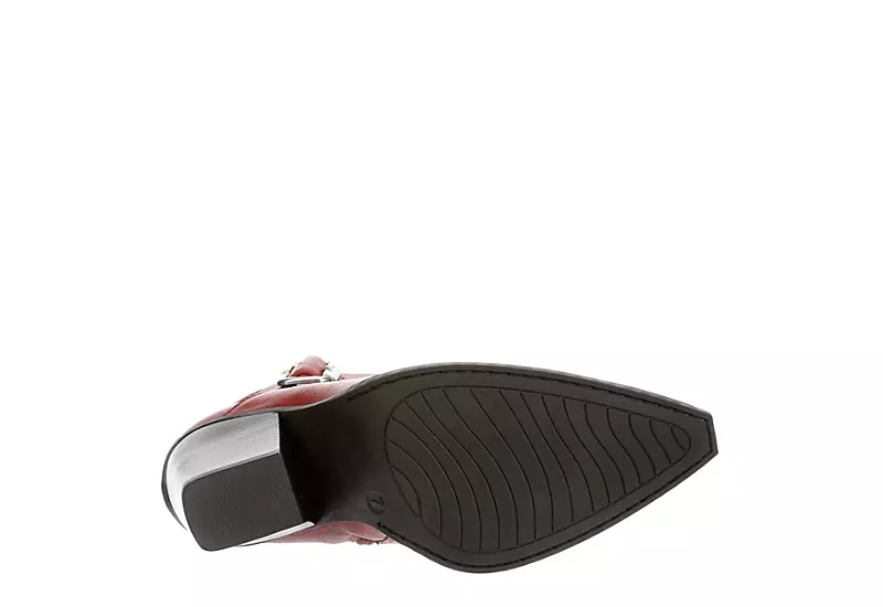 Dress to impress with the Dottie women’s Western boot from Michael by Michael Shannon. With a faux leather upper featuring decorative straps with buckle detail, metallic stud accents, and a metal toe for added flair, this zippered boot, with its sleek pointed toe, is the epitome of country chic. A lightly padded footbed comforts your feet, while the stacked block heel creates a stunning lift.